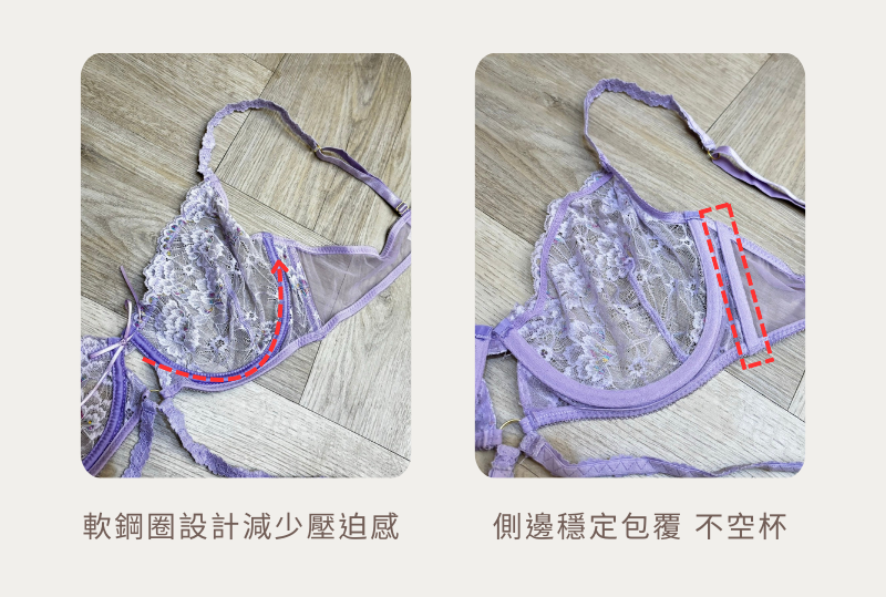 3/4罩杯,側邊穩定包覆,不顯空杯