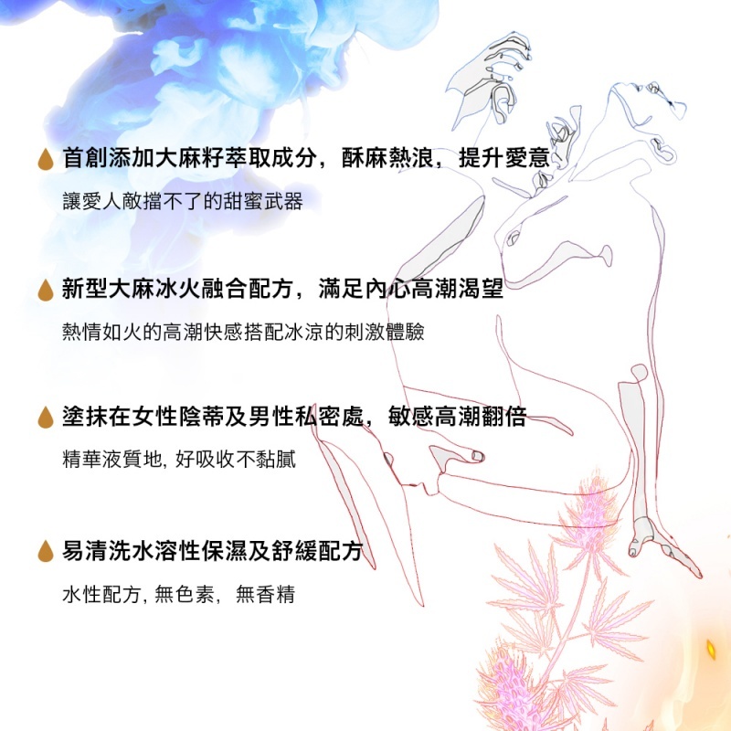 · 首創添加大麻籽萃取成分,酥麻熱浪,提升愛慾