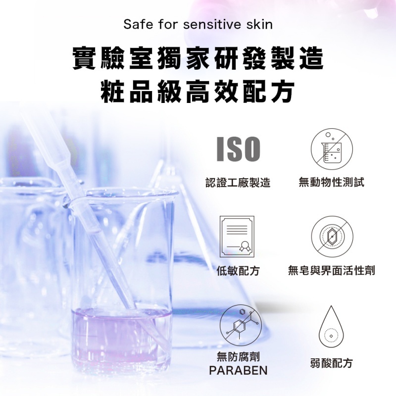 · 易清洗水溶性保濕及舒緩配方,完美滋潤,減少不適
