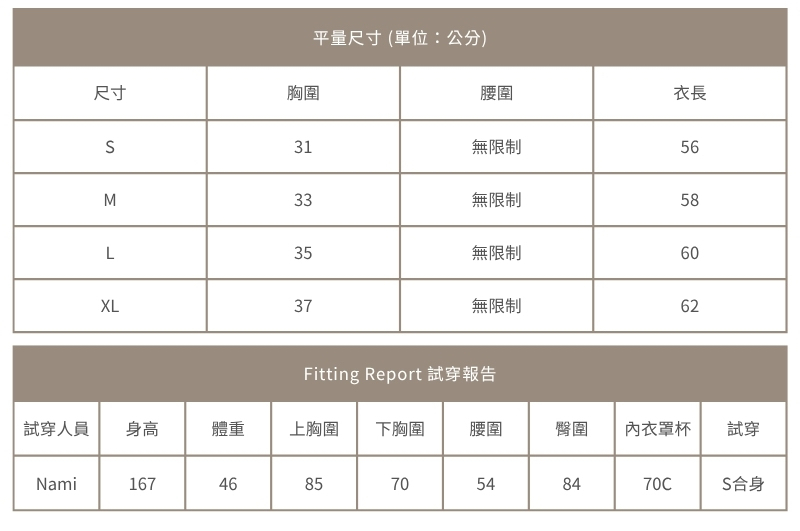 若不確定自己身型須穿著的尺寸,可以詢問客服唷