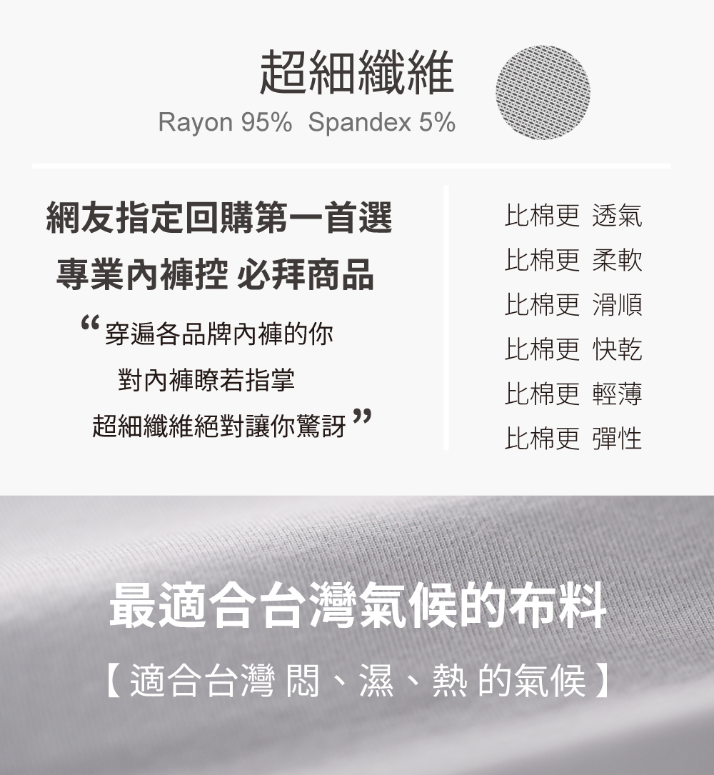 【超細纖維】彈性延伸,透氣舒適。