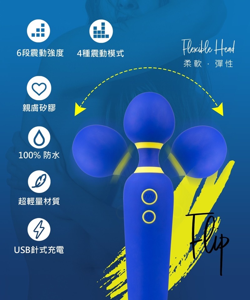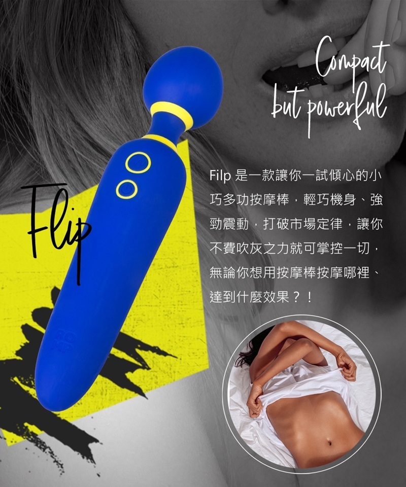 Flip 是一款讓你一試傾心的小巧多功按摩棒,輕巧機身、強勁震動,打破市場定律,讓你不費吹灰之力就可掌控一切,無論你想用按摩棒按摩哪裡、達到什麼效果?!