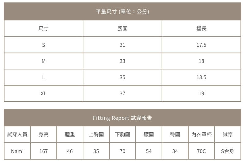 若不確定自己身型須穿著的尺寸,可以詢問客服唷
