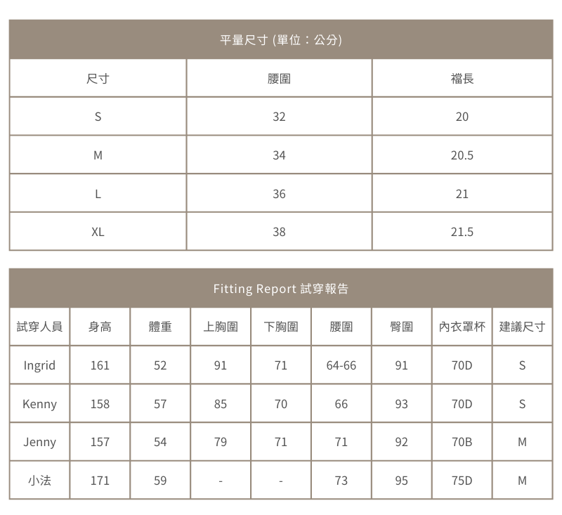 若不確定自己身型須穿著的尺寸,可以詢問客服唷